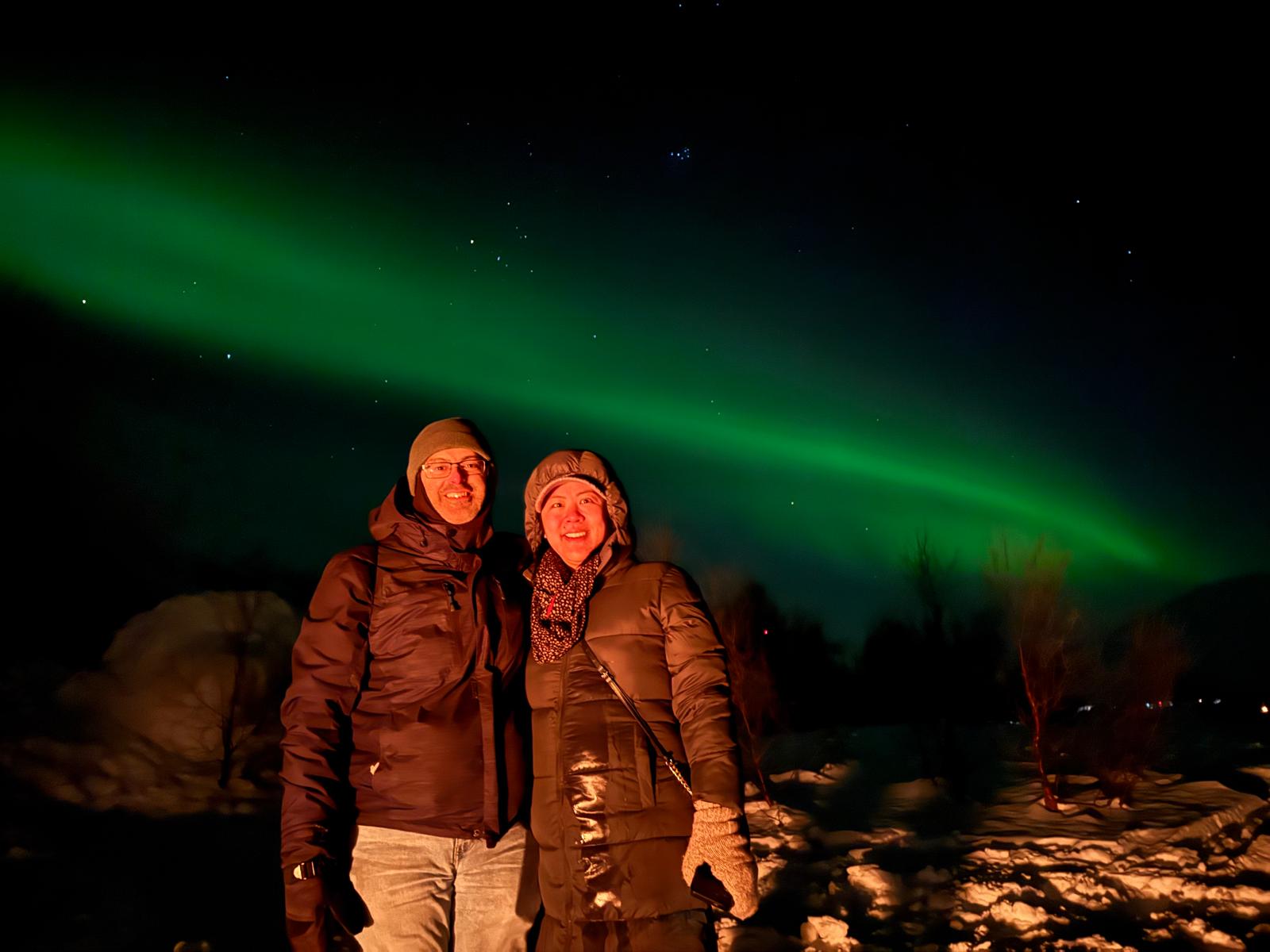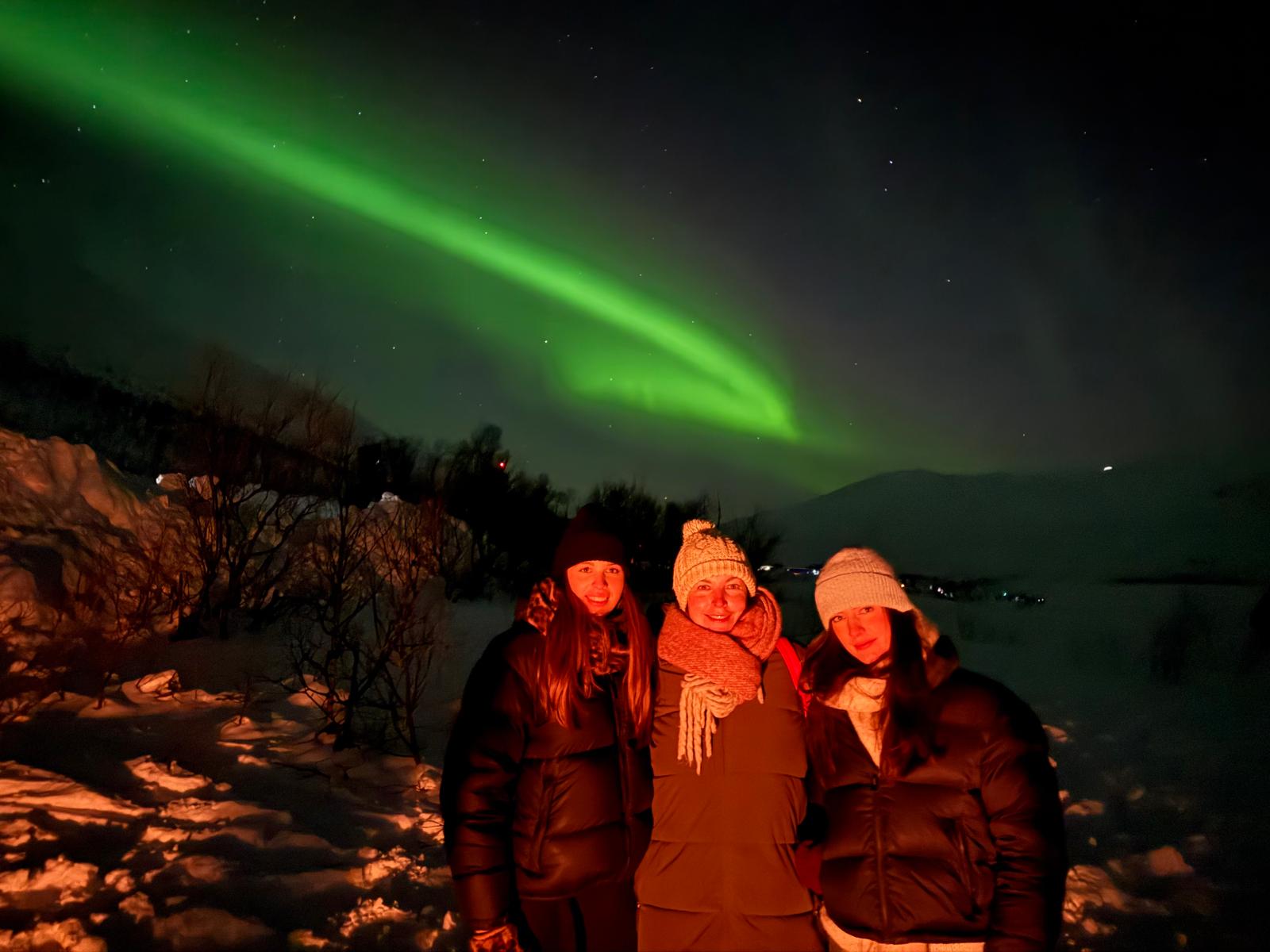 The tour usually returns around midnight to 1:00 AM, depending on weather and aurora conditions. Exact timing may vary, as we often stay out longer to maximize your chances of seeing the lights.